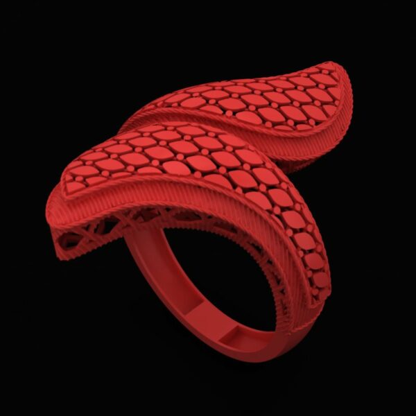 ضخامت 0.3 میلیمتر در کنار ساختار مشبک داخلی باعث کنترل وزن و حفظ استحکام شده و وزن نهایی حدود 4.8 گرم را فراهم کرده است. این مدل برای افرادی طراحی شده که به انگشتر های حجمی، خاص و متفاوت علاقه دارند و به دنبال قطعه ای با هویت هنری و ماندگار هستند.