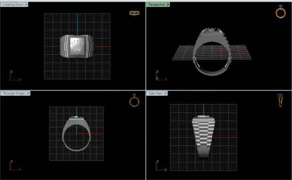 این مدل با فرمت 3dm در نرم افزار Matrix طراحی شده تا تمام خطوط و حجم ها با دقت میلیمتری بازسازی شوند. ابعاد 20.82*26.48 میلیمتر، ضخامت 11.78 میلیمتر و وزن 10.76 گرم ترکیب کاملی از دوام و ظرافت را شکل داده اند. ساختار آن با تمرکز بر جزئیات برجستهی دور ستون ها و سطح بالایی، حس یک قطعهی مهندسی لوکس را منتقل میکند؛ به عبارتی، این انگشتر هم طراحی است و هم بیانی از قدرت زمان.