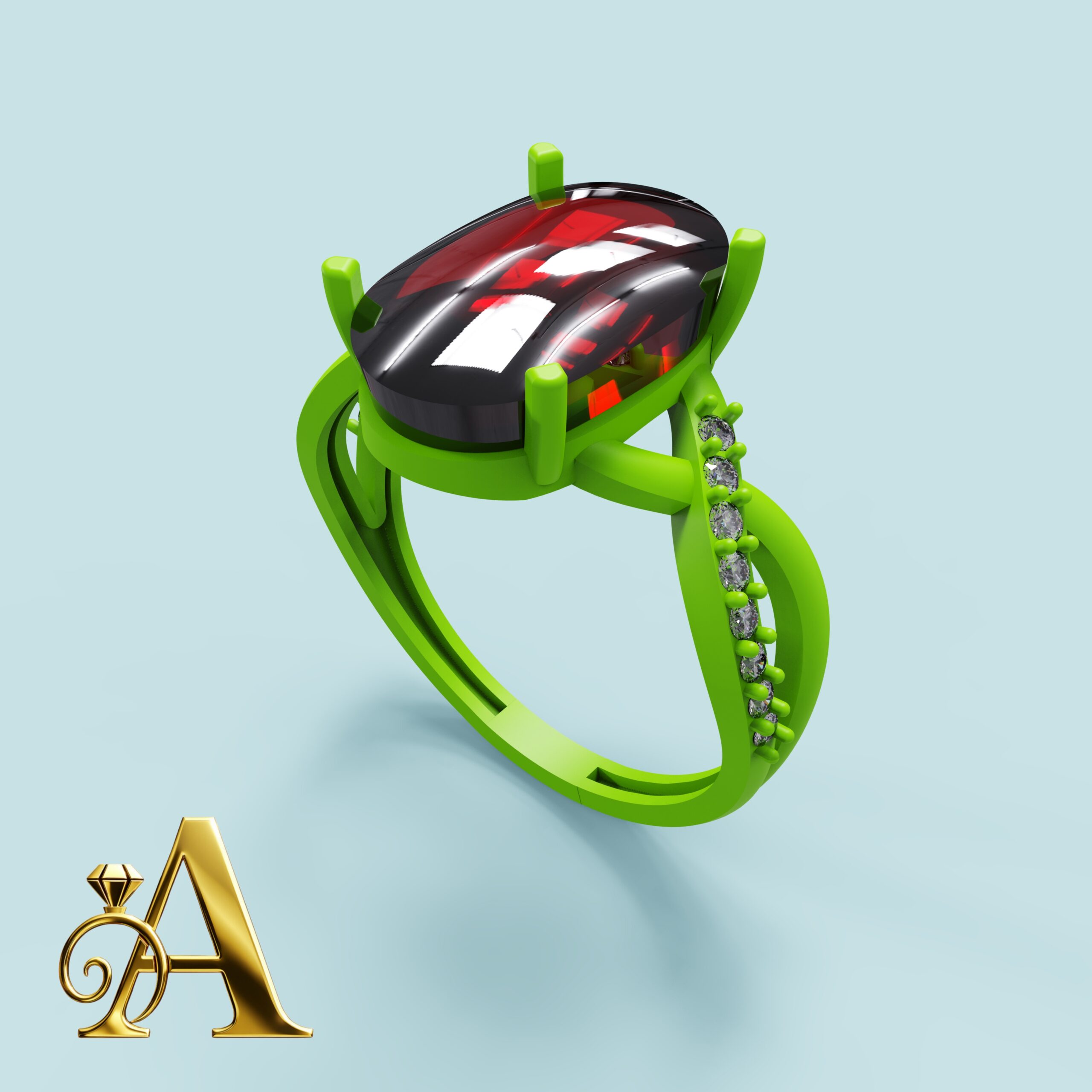 مدل سه بعدی این انگشتر در فرمت STL و با استفاده از نرم افزار حرفه ای متریکس طراحی شده است. این امر امکان پرینت سه بعدی دقیق و ریخته گری با جزئیات کامل را فراهم میسازد، به طوری که تمامی ظرایف رکاب و جای گذاری سنگ در محصول نهایی حفظ خواهد شد.