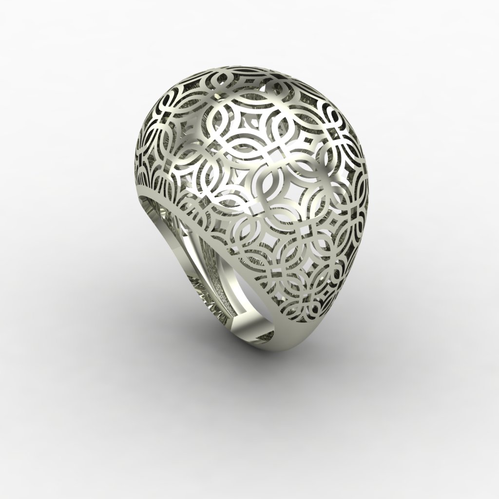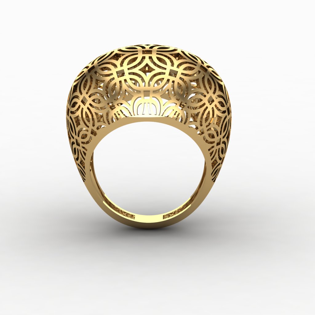 فرآیند مدل سازی انگشتر صنم در نرم افزار Matrix انجام شده و خروجی با فرمت STL آماده ریخته گری و تولید حرفه ای است. تناسب دقیق در قطر بازو ها و الگوی شبکه ای منسجم باعث شده مدل نه تنها از نظر زیبایی، بلکه از نظر مهندسی ساخت نیز بینقص باشد. این سبک طراحی با تمرکز بر الگو های تکرار شونده و فضا های خالی ظریف، به انگشتر حالتی سبک، تنفس پذیر و بسیار لوکس می دهد.