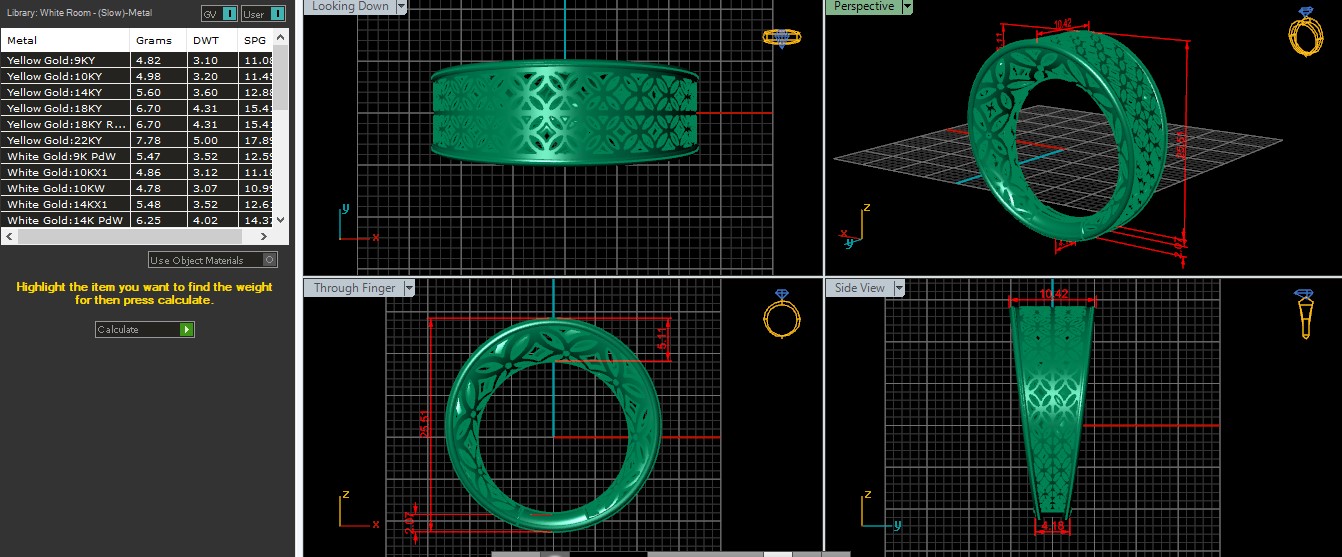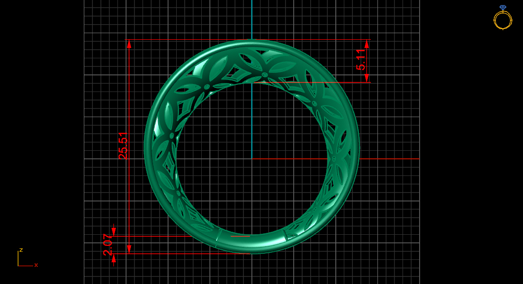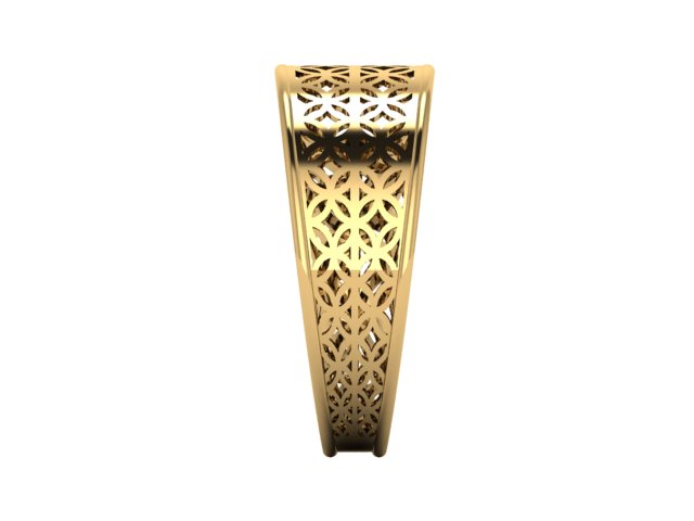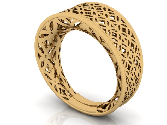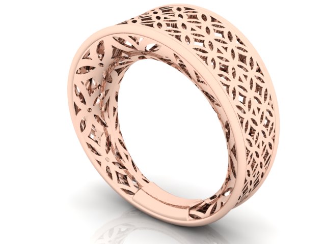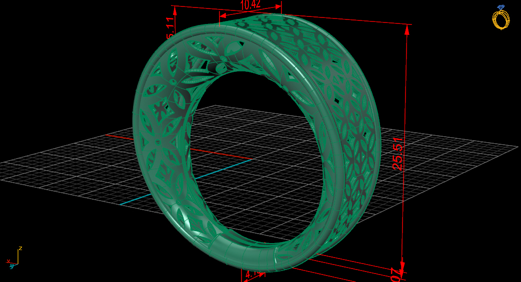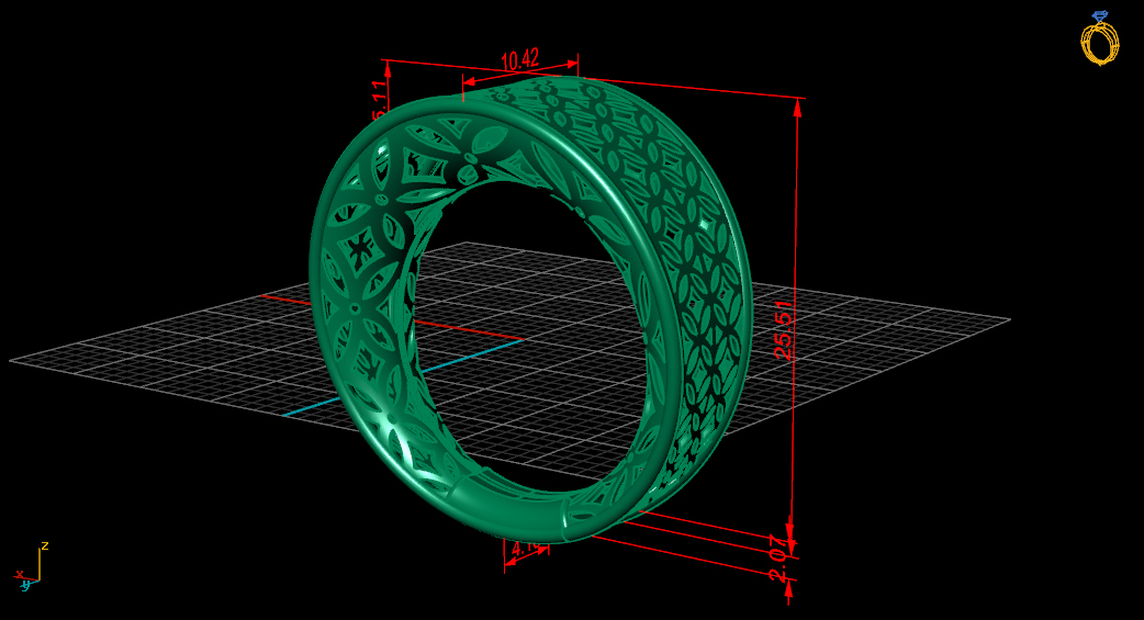 فرمت سه بعدی 3dm و اجرای استاندارد توسط نرم افزار متریکس، بالاترین کیفیت سطح مدل سازی و تولید را برای این اثر تضمین میکند. ضخامت ۴۰۰ میکرون و وزن بین ۵ تا ۶ گرم، برای سایز ۵۷ انتخابی مناسب برای استفاده روزانه یا مجلسی را رقم زده است. جزئیات بسیار دقیق و مهندسی شده شبکه ها باعث شده انگشتر بر روی دست به خوبی بنشیند و فرایند سفارشی سازی برای انواع آبکاری یا رنگ فلز را تسهیل کند.