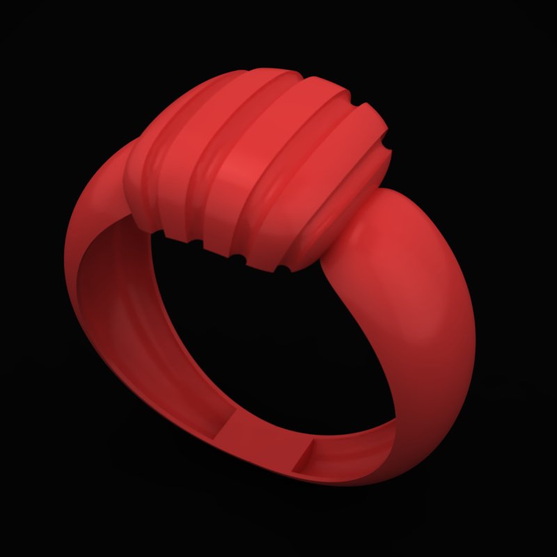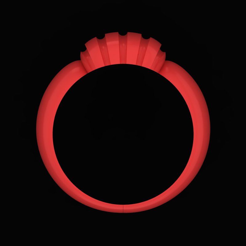 حجم مرکزی این مدل با خطوط صاف و پیوسته، تصویری از قدرت هندسی در طراحی دیجیتال ارائه میدهد. بخش های براق انگشتر، منعکس کننده نور طبیعی هستند، در حالیکه لایههای مات در پس زمینه، انسجام بصری ایجاد میکنند. این بازی میان نور و سایه، روحی معاصر به فرم میدهد و آن را برای ساخت با هر نوع فلز گرانبها از طلای زرد تا پلاتین مناسب میسازد.