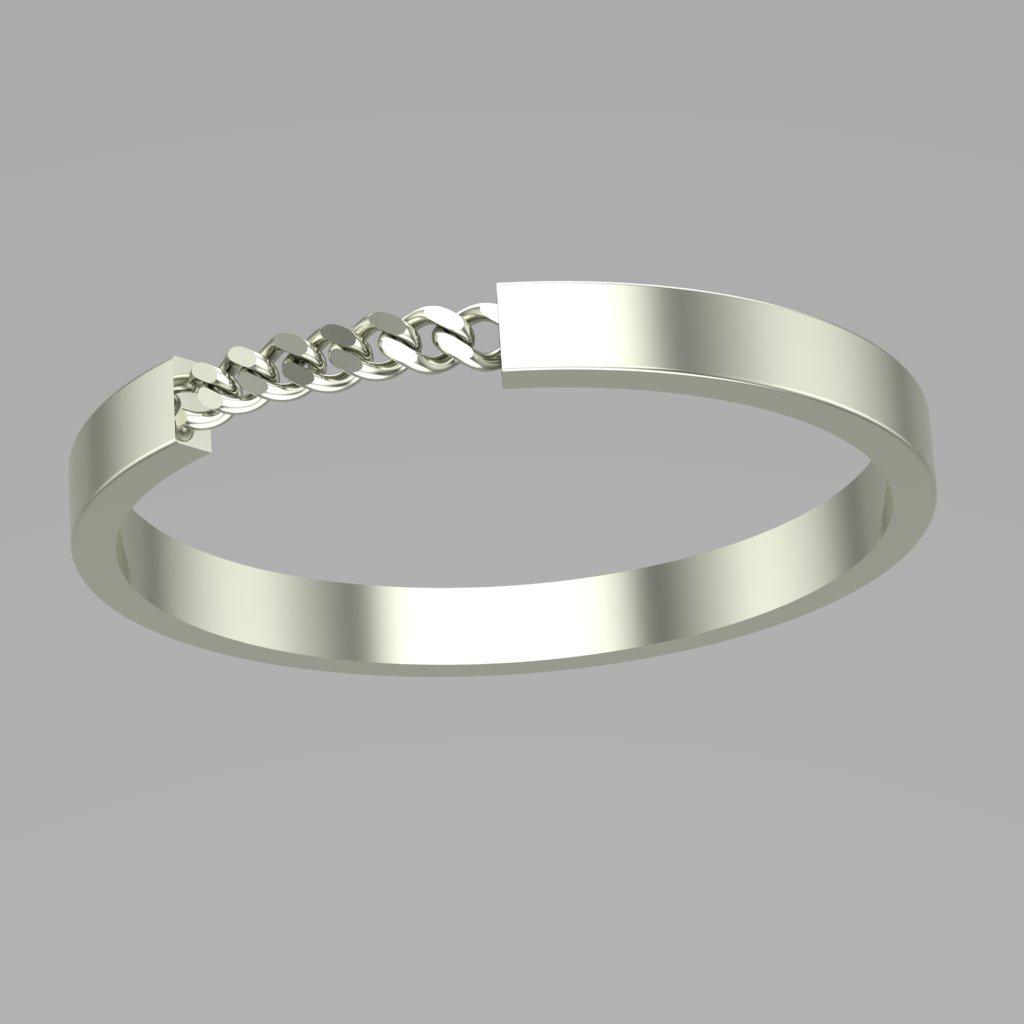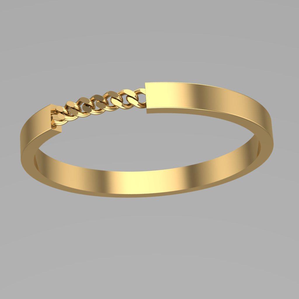 مدل زنجیری این مجموعه با ترکیب یک باند صیقلی و یک بخش زنجیر تو در تو، تلفیقی جذاب از ظرافت و تم مدرن-صنعتی را ارائه میدهد. این انگشتر با وجود وزن سبک، حس پویایی و انعطاف را القا میکند و در استایل روزمره جلوه ای متفاوت به دست میدهد. طراحی آن به گونه ای است که در عین سادگی، بینهایت چشمگیر و منحصر به فرد به نظر میرسد.