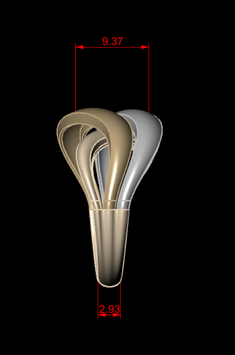 این انگشتر با ابعاد پهنا 9.37 و ارتفاع 2.93 میلیمتر، مناسب سایز 56 طراحی شده است و با ضخامت 0.3 میلیمتر، وزن سبک 3.10 گرم را فراهم میکند، به همین خاطر در استفاده روزانه حس راحتی و سبکی به دست می دهد. ساخت این مدل با بهره گیری از نرم افزار متریکس و خروجی فایل stl، دقت بالای ساخت جزئیات و انطباق کامل با مدل سازی دیجیتال را تضمین می نماید.