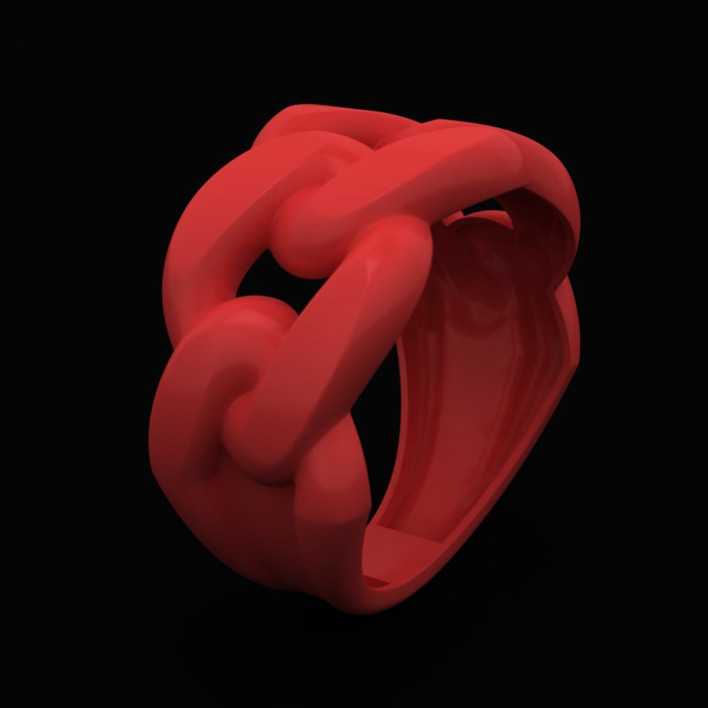انگشتر کارتیه R-Cartier-07 با فرم زنجیر وار پیوسته، بازتابی از اصالت طراحی کلاسیک کارتیه و نگاه مدرن به ساختار جواهرات است. این مدل با استفاده از نرم افزار Matrix به صورت سه بعدی و دقیق مدل سازی شده و انحنای نرم حلقه ها با حجم منسجم، جلوه ای لوکس و کاربردی را ارائه می دهد. رنگ قرمز در نمونه دیجیتال، هر جزئیات و اتصال را به وضوح نشان می دهد تا کیفیت مهندسی آن برای تولید واقعی آشکار گردد.