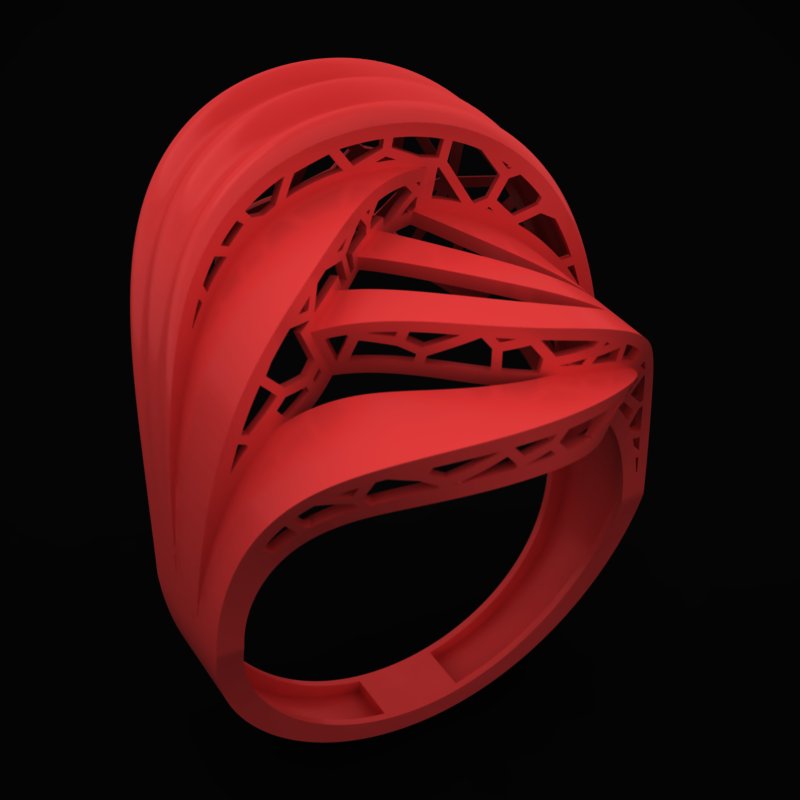 انگشتر کژال R-Kazhal-33 تجسمی از معماری سیال و فرم های درهمتنیده است که ظرافت و قدرت را در قالبی واحد ترکیب میکند. خطوط نرم و مواج از پایه حلقه تا سطح بالایی امتداد یافته اند و با انحناهایی دقیق، ساختاری سه بعدی و پویا ایجاد کرده اند. این طرح یادآور حرکت طبیعی نسیم روی پارچه ای فلزی است؛ جایی که فرم های باز و بسته در گفت و گویی بصری، تعادل میان سختی و لطافت را بازآفرینی مینمایند. رنگ قرمز رندر، روح پویای طراحی را نمایان کرده و انرژی جریان یافته در حجم را برجسته میسازد.