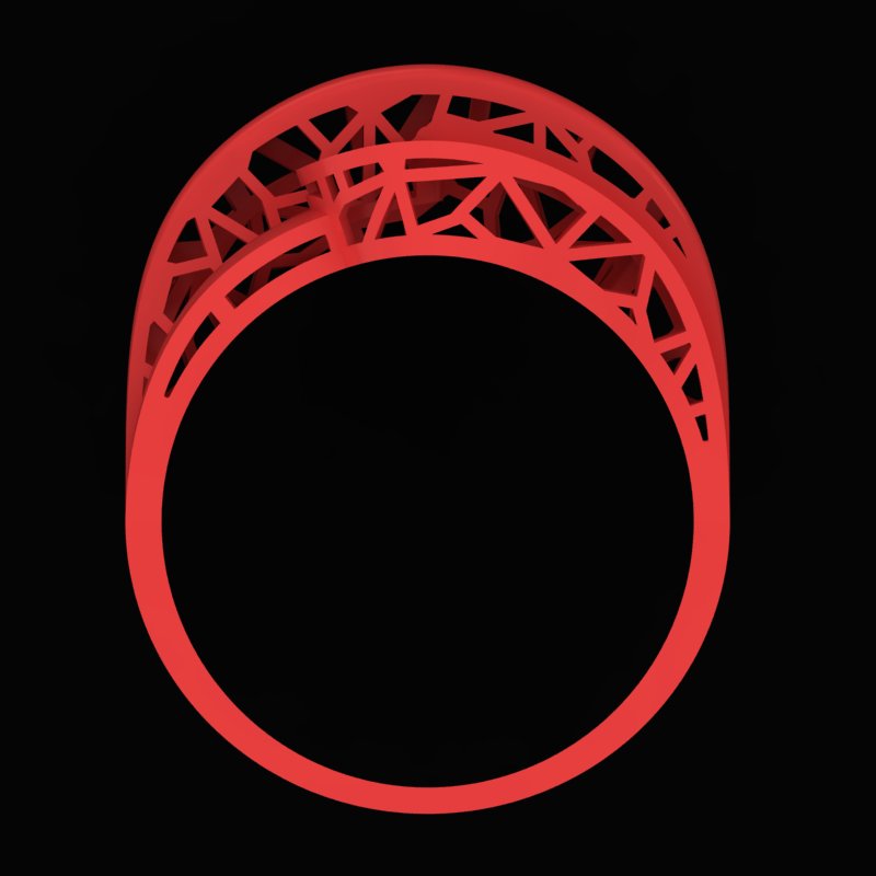 در جنبه فنی، این مدل با نرم افزار Matrix و در فرمت 3dm طراحی شده تا هر جزئیات هندسی با دقت میلیمتری اجرا گردد. ابعاد 20.5*17*6.5 میلیمتر در کنار ضخامت ظریف ۰.۳ میلیمتر وزن سبک ۴.۲ گرم را ممکن ساخته است؛ ترکیبی متوازن از مقاومت و زیبایی. ساختار داخلی حلقه با شبکه های باز و معماری دقیق طراحی شده تا استحکام ضمن کاهش وزن حفظ شود، رویکردی کاملاً مدرن در طراحی جواهرات دیجیتال.