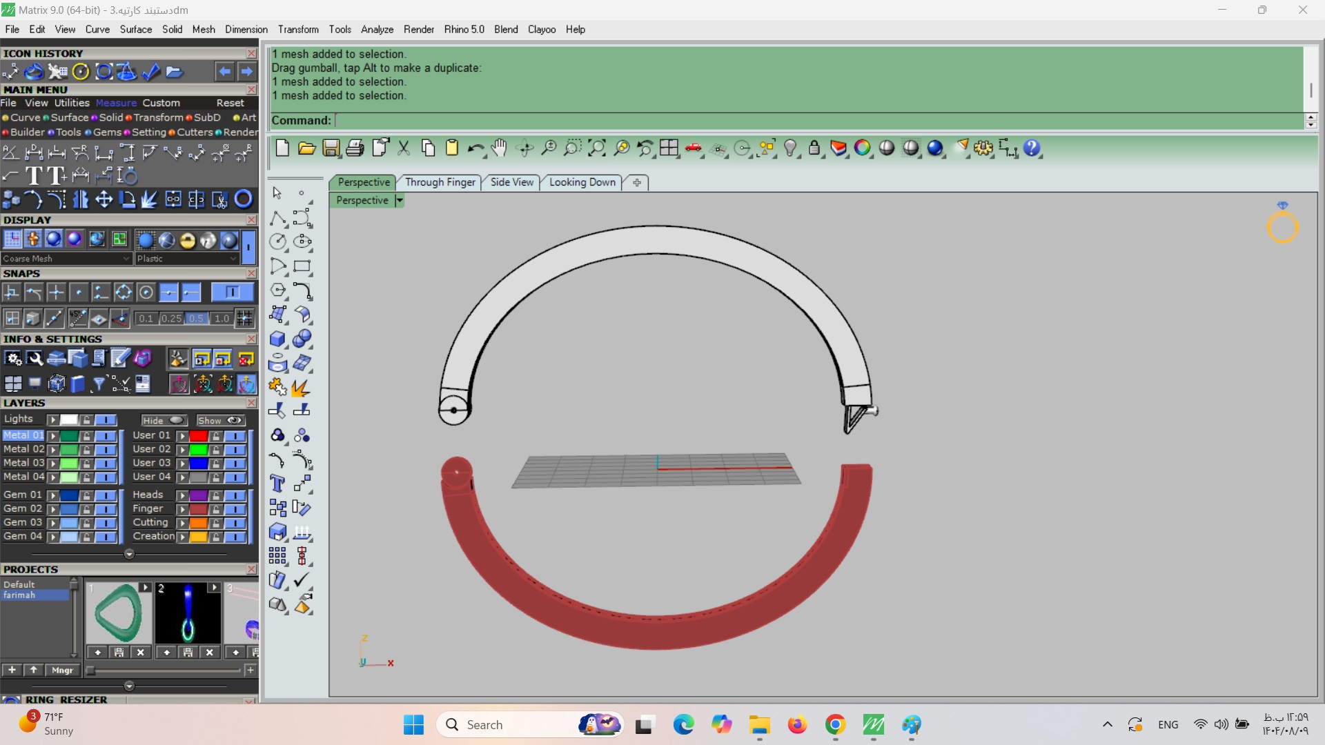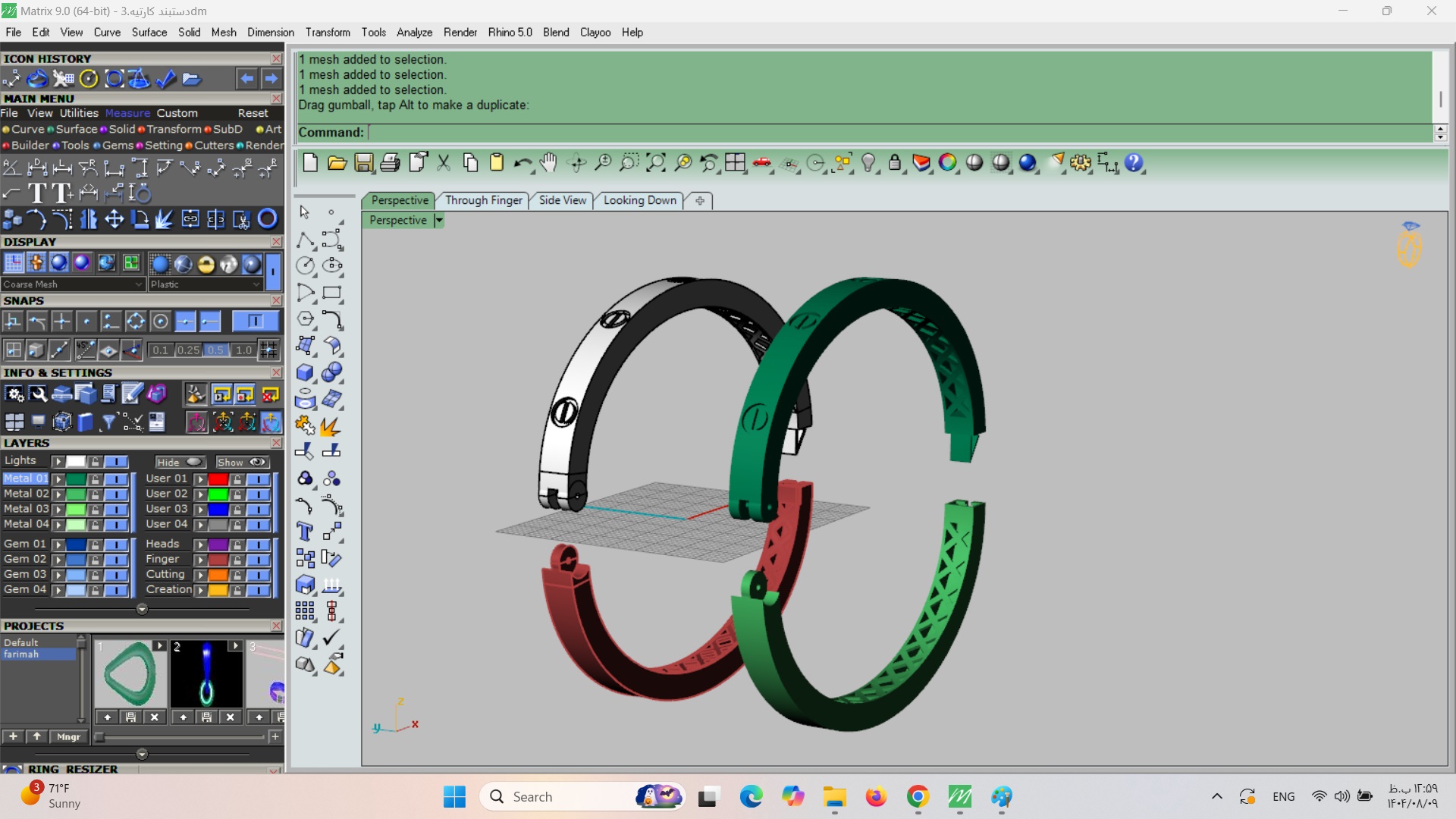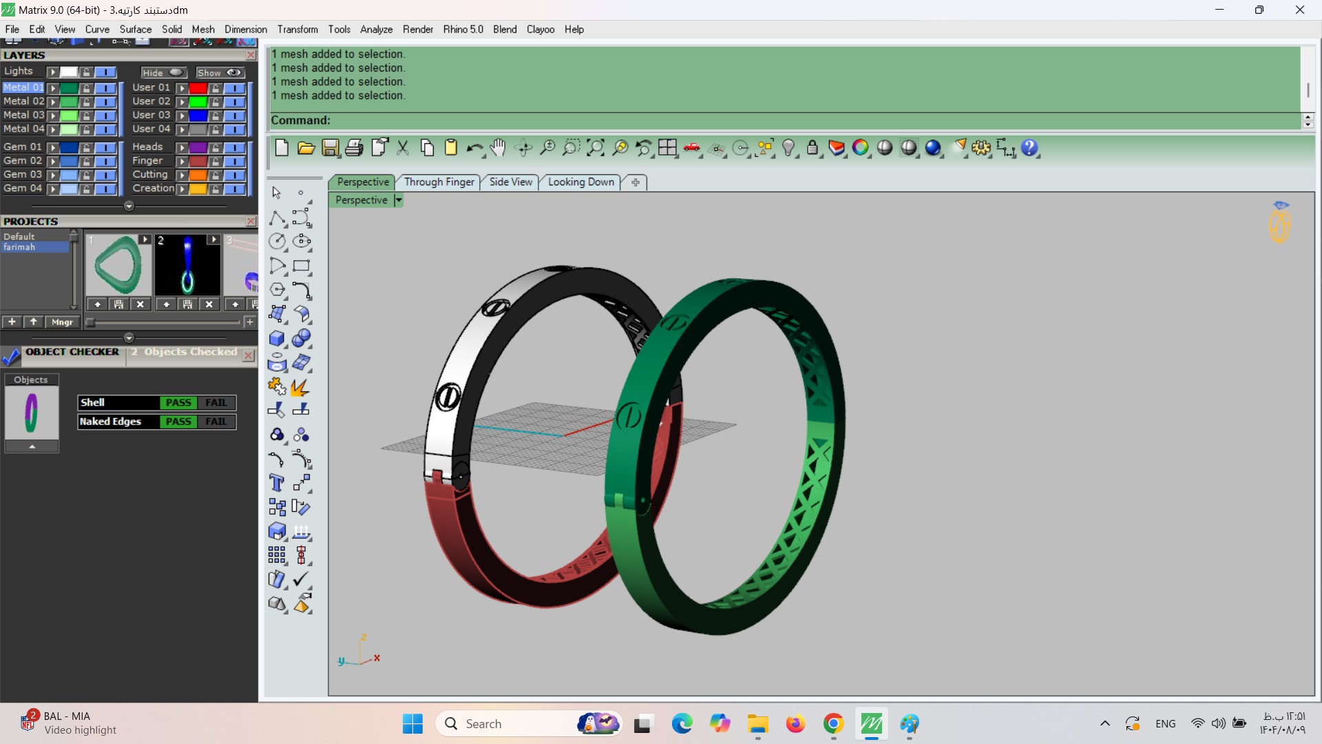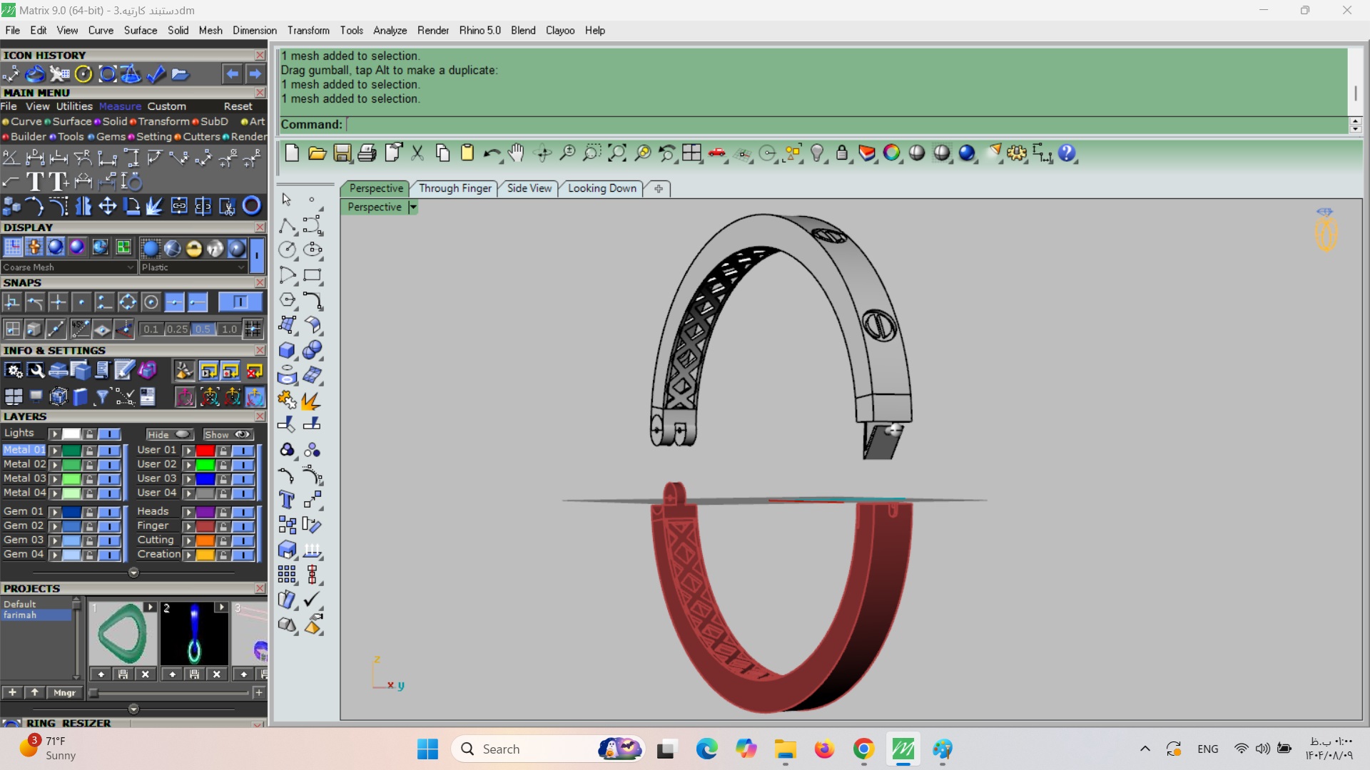 فرمت 3dm و نرم افزار متریکس استفاده شده در طراحی، امکان مدل سازی بسیار دقیق و قابل تولید صنعتی این النگو را فراهم کرده است. ابعاد ۵ در ۵۳ در ۶۴ میلیمتر، مناسب مچ های متوسط تا بزرگ است و ضخامت ۰.۵ میلیمتر باعث وزن متعادل ۲۰ گرم شده که حس استحکام و راحتی را برای استفاده روزانه تضمین می کند. در کنار رنگ رزگلد، جلوه ای شیک و چشم گیر برای پوشیدن در مناسبت های مختلف ایجاد می شود.