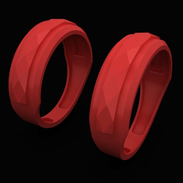 این حلقهها با فرمتهای 3dm و stl و توسط نرم افزار حرفه ای متریکس طراحی شده اند که دقت بالا در اجرای هندسه و تناسب ابعاد را تضمین میکند. ابعاد 23*7*2.5 میلیمتر، 24*7*2.5 میلیمتر به همراه سایز های 59 و 63، امکان استفاده راحت برای دو دست با اندازه متفاوت را فراهم کرده و فرم استانداردی به محصول بخشیده است.
