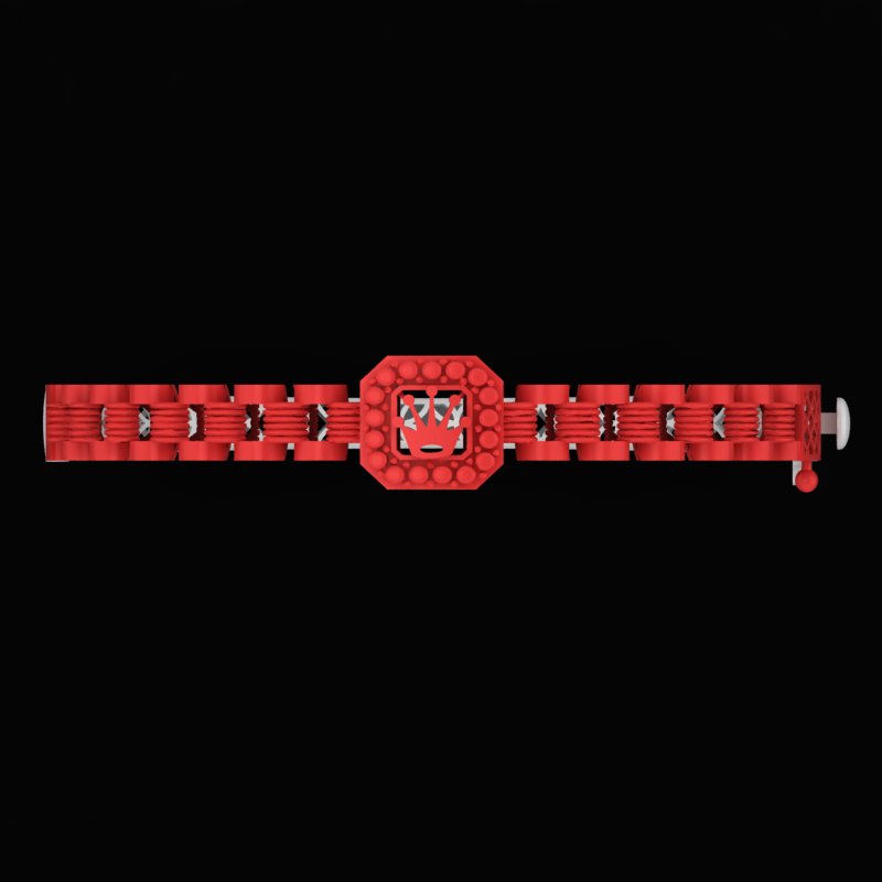 دستبند رولکس D-Rolex-05 ترکیبی از طراحی جسورانه و جزئیات دقیق است. بخش بیرونی با لینک های حجمی و بافت دار ساخته شده که با الهام از ساختار نمادین رولکس، جلوه ای لوکس و قدرتمند ایجاد میکند. مرکز دستبند با قطعه ای برجسته و نمادین تکمیل شده که هویت مدل را شکل میدهد و آن را به زیوری متمایز در میان سایر مدل های رولکسی تبدیل میکند.