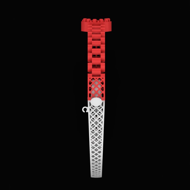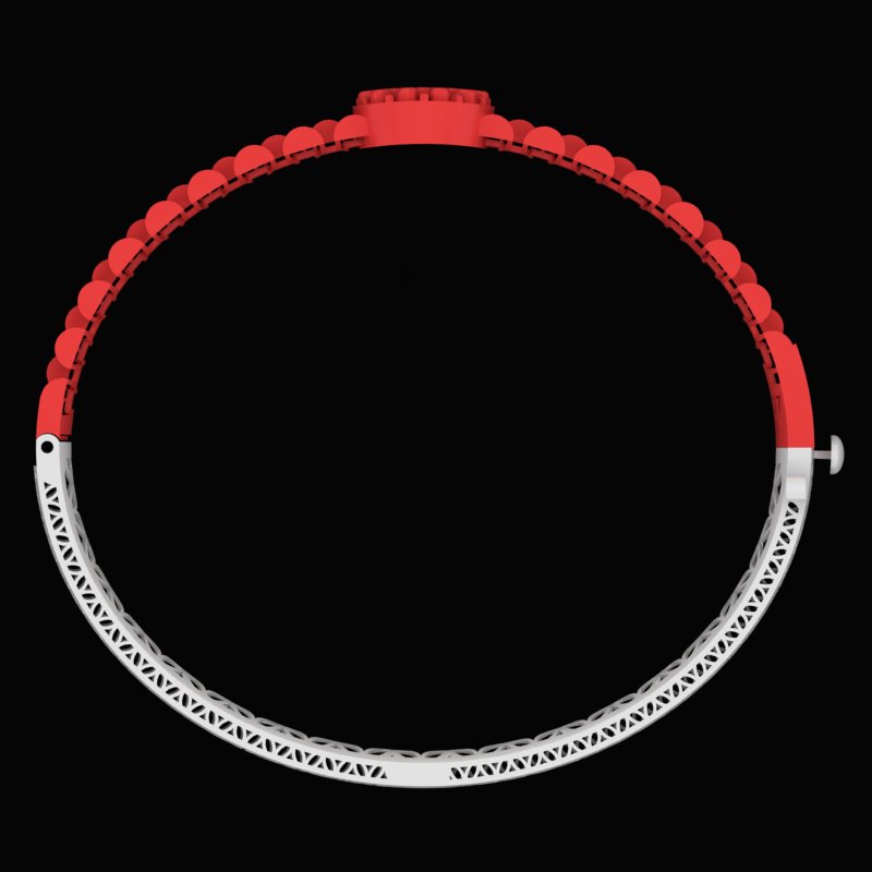 در قسمت زیرین دستبند، ساختار شبکه ای سبک و مشبک با الگوی تکرار شونده هندسی انتخاب شده تا وزن کلی محصول کاهش یافته و در عین حال زیبایی و جریان نور در سطح داخلی حفظ شود. این شبکه بندی سبب میشود دستبند روی مچ دست بسیار راحت بنشیند و تهویه مناسبی نیز ایجاد شود. ترکیب این دو بخش، یعنی بند های حجیم بالا و شبکه ظریف پایین، طراحی را هم زمان قدرتمند و ظریف نشان میدهد.