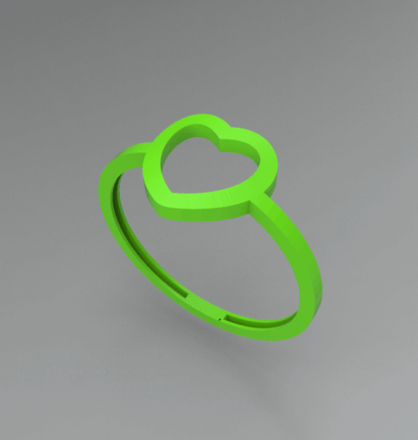 از نظر مشخصات فیزیکی، این انگشتر در سایز استاندارد ۵۴ طراحی شده است که یکی از پرکاربرد ترین سایز ها در بازار زیورآلات زنانه است. وزن برآوردی محصول نهایی حدود ۱.۰۸ گرم است که آن را در رده انگشتر های سبک قرار میدهد. ابعاد طرح قلب روی کار ۸.۵ میلیمتر است که نمایی چشمگیر دارد، اما ضخامت کلی کار ۰.۳ میلیمتر در نظر گرفته شده است؛ این ضخامت کم نشان دهنده ظرافت بالای کار است و نیازمند دقت در مرحله پرداخت کاری میباشد تا فرم اصلی تغییر نکند.