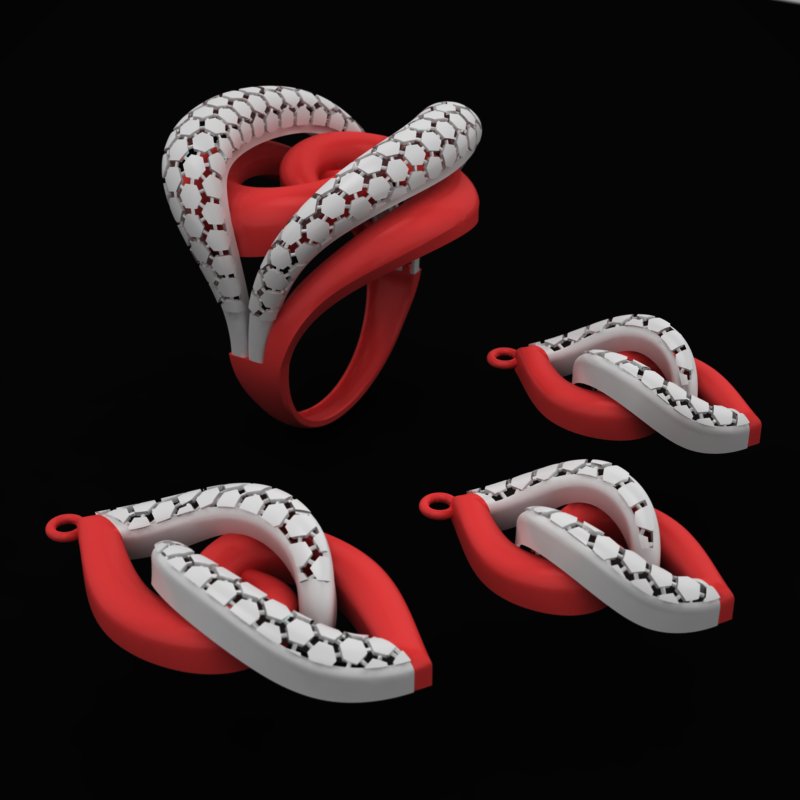ابعادآویز 27*14.5*6 میلیمتر، گوشواره 20*11.5*6 میلیمتر، انگشتر 24*24*8 میلیمتر