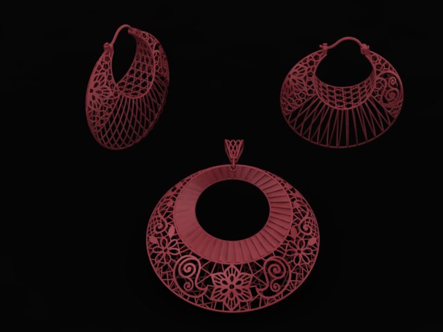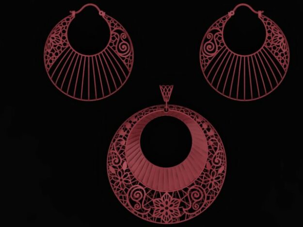 نیم ست فیوژن کد ۱ با ترکیبی از طرح های مشبک گل دار و خطوط باریک شعاعی، جلوه ای هنری و معاصر ایجاد کرده که مناسب استفاده در مهمانی ها و مراسم رسمی است. گردنبند دایره ای با جزئیات ظریف و پاپیون کوچک آن، هارمونی طراحی را تکمیل کرده و گوشواره های هماهنگ، انسجام بصری مجموعه را افزایش میدهند.