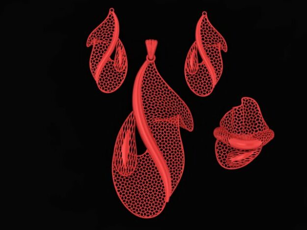 این نیم ست با استفاده از نرم افزار متریکس و در فرمت STL مدل سازی شده که امکان تولید با دقت بالا و در طیف گسترده ای از متریال ها را فراهم میکند. ترکیب تکنولوژی مدرن در طراحی و فرم های هنری باعث شده نیم ست فیوژن کد 2 یک انتخاب ممتاز برای علاقه مندان به جواهرات خاص و متفاوت باشد.