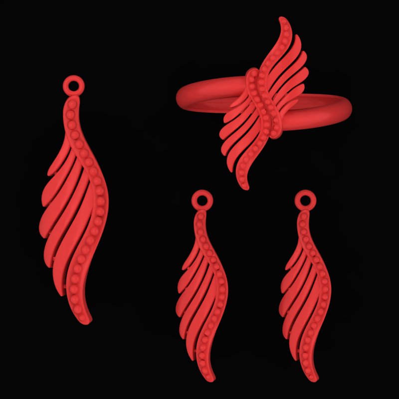 نیم ست مینیمال N-Minimal-03 جلوه ای از خلاقیت و سبک مدرن را در کالکشن جواهرات ایرانی به نمایش گذاشته است. طراحی برجسته این مجموعه از بال های پرنده الهام گرفته و با خطوط منحنی و عناصر نقطه ای، حس سبکی، حرکت و بالندگی را به مخاطب منتقل می کند. نرم افزار متریکس و فرمت 3dm، تمامی جزئیات موج دار و توپُر را با دقت بالا در مدل سازی سه بعدی اجرا کرده اند تا نمای بصری جذاب و متفاوتی ایجاد شود.