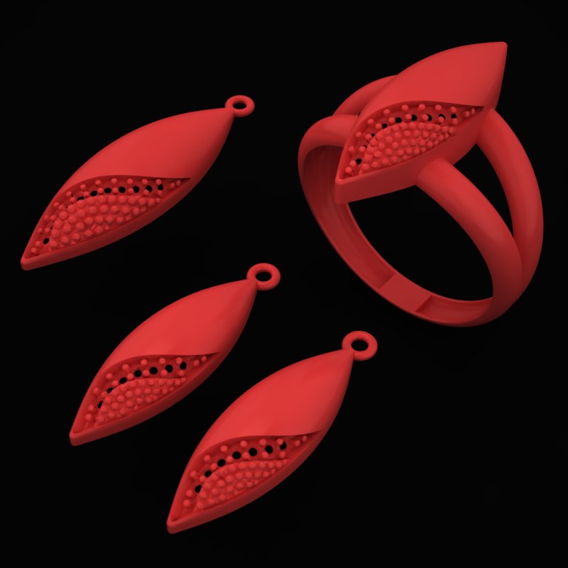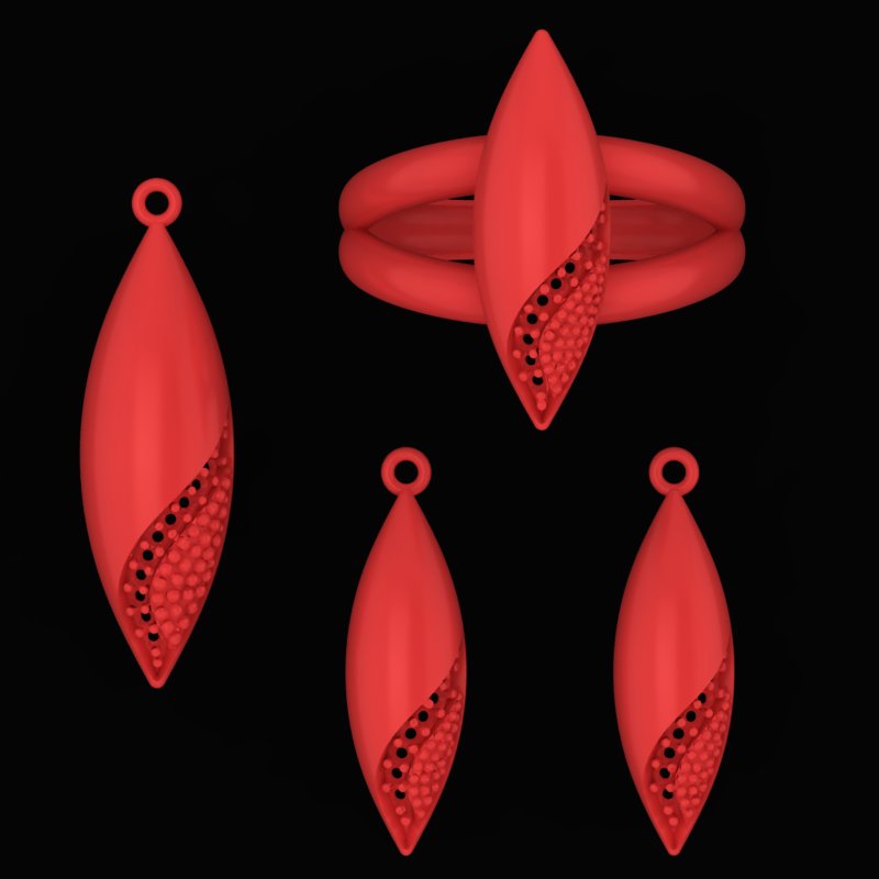 مدل سازی نیم ست N-Minimal-05 در نرم افزار متریکس و فرمت 3dm امکان دقت و کنترل بالا در ارائه جزئیات را فراهم ساخته است. ساختار برگ با چینش منظمی از نقاط برجسته و سطح براق، آماده آبکاری در رنگ طلای زرد، سفید، رزگلد یا حتی ترکیب با سنگ های رنگی است. این ویژگی ها جواهر را به گزینه مناسبی برای هدایای خاص و استایل های مدرن زنانه بدل می سازد.
